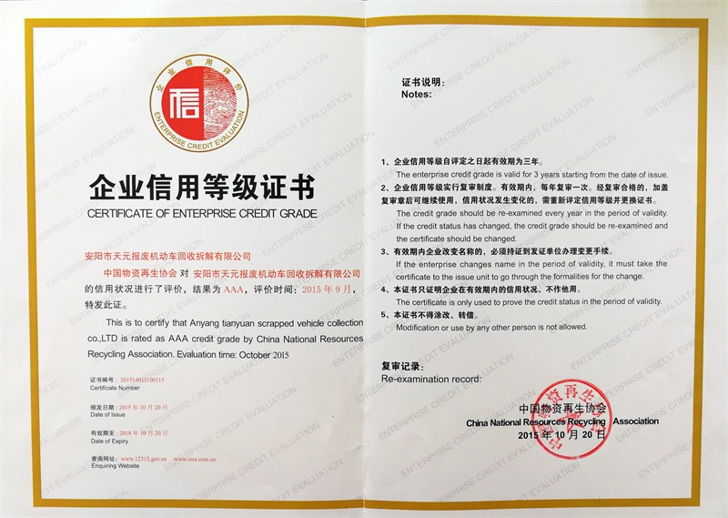 ? 安陽市天元報廢機動車回收拆解有限公司